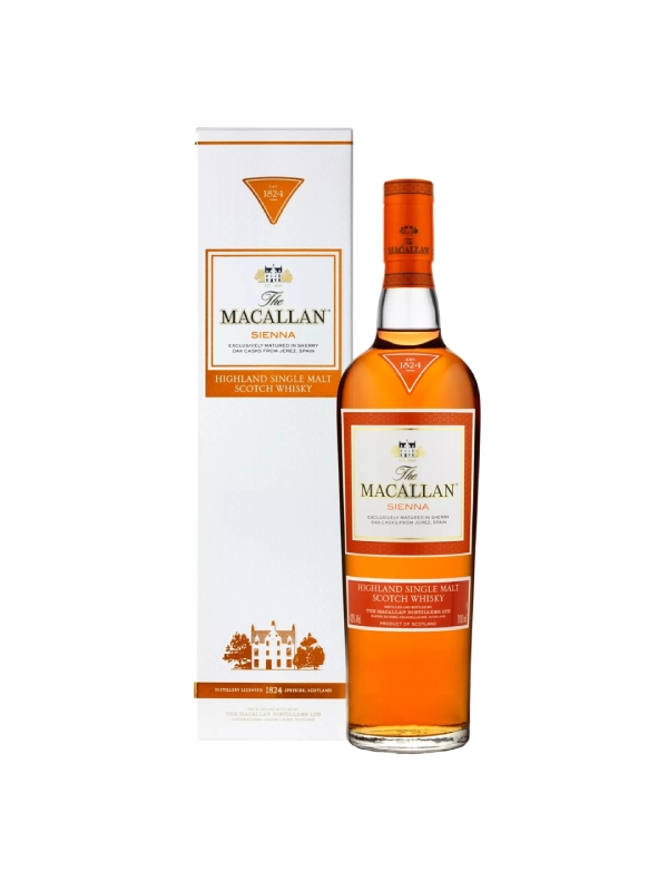 Macallan Sienna thuộc dòng The 1824 Series, lấy cảm hứng từ sắc độ tự nhiên của whisky khi ủ trong thùng gỗ sồi sherry. Phiên bản này sở hữu màu hổ phách đậm – “sienna” – được tạo nên hoàn toàn tự nhiên, không qua nhuộm màu. Rượu có nồng độ 43%, dung tích 700ml, mang hương cam quýt, vani, gừng và vị ngọt cân bằng của gỗ sồi. Với phong cách tinh tế và giàu chiều sâu, Macallan Sienna là lựa chọn được nhiều tín đồ whisky yêu thích.
